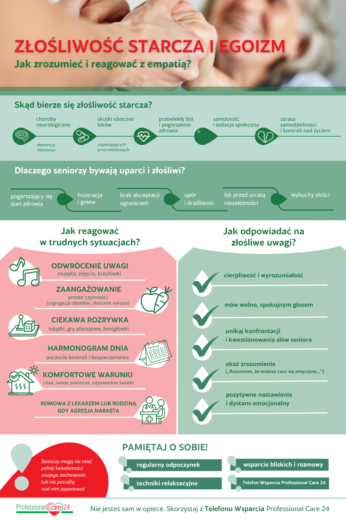 Złośliwość i egoizm starszych ludzi, choć mogą wyglądać na celowe działanie, to jednak zwykle wynikają z czynników niezależnych od seniora, które powodują cierpienie, problemy z orientacją i ogólne poczucie zagubienia.